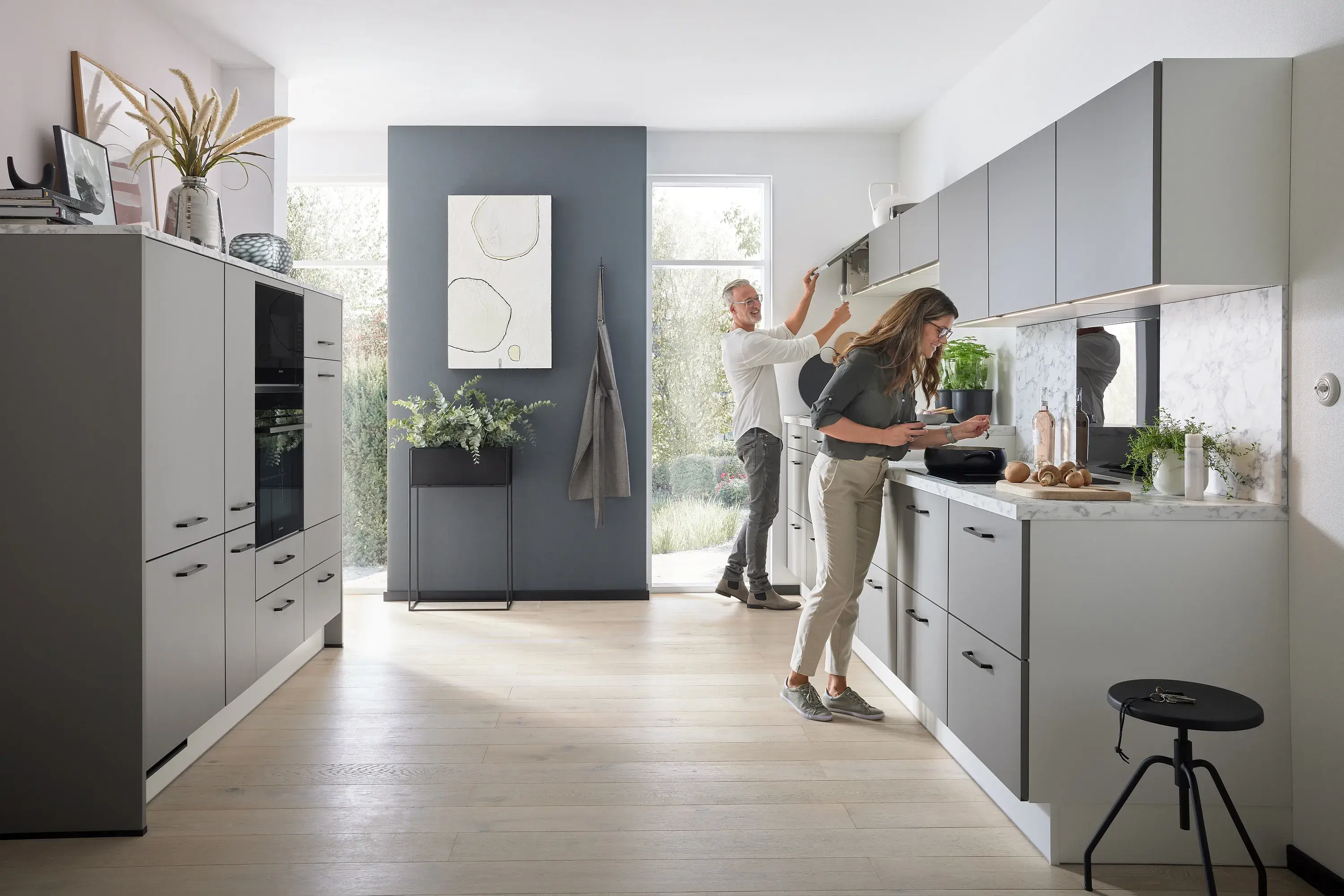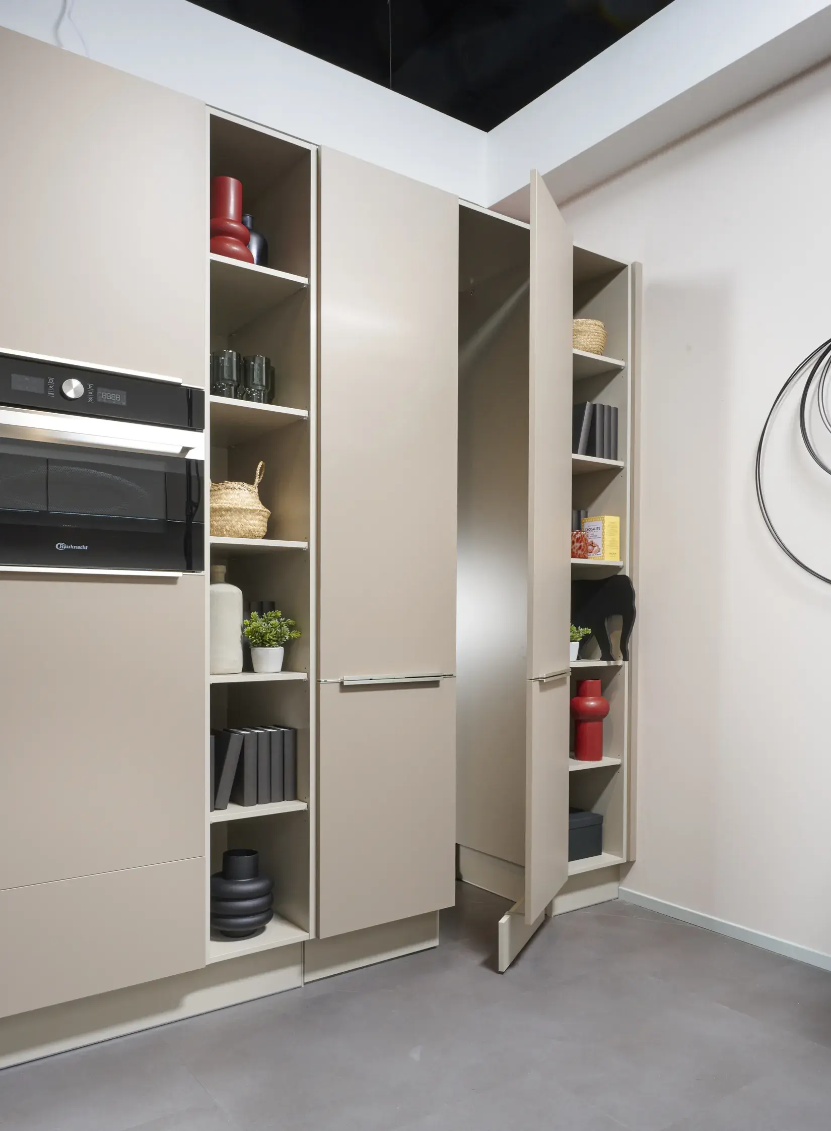 Nicht zuletzt im Hauswirtschaftsraum zahlen sich stabile Scharniere und eine funktionsreiche Innenausstattung aus: Der Modulschrank unter der Waschmaschine bietet eine stabile Ablagefläche selbst für schwere Wäschekörbe. Im passenden Seitenschrank kann die Schmutzwäsche in mehreren Wäschekörben vorsortiert und aufbewahrt werden. Individuell wählbare Organisationssysteme gliedern das Innenleben Ihrer Schränke und Auszüge ganz nach Wunsch. Das Beste: Auch ohne extra Raum können Sie sich mit Impuls Küchenmöbeln eine abgetrennte Waschküche schaffen, die Sie durch eine regelrechte "Geheimtür" betreten. Impuls bietet dafür spezielle Türen, denen man gar nicht ansieht, dass sie keine Schranktüren sind.