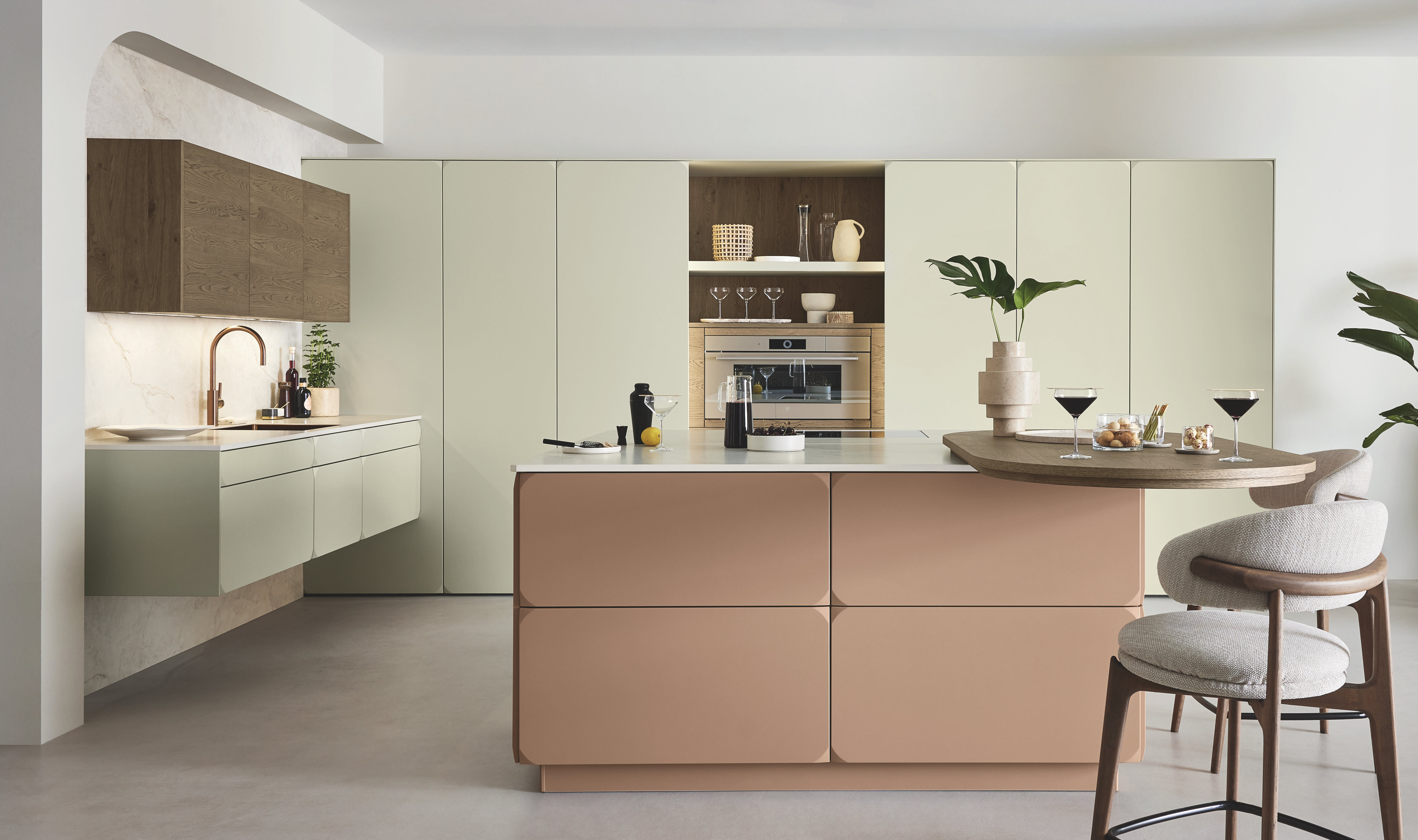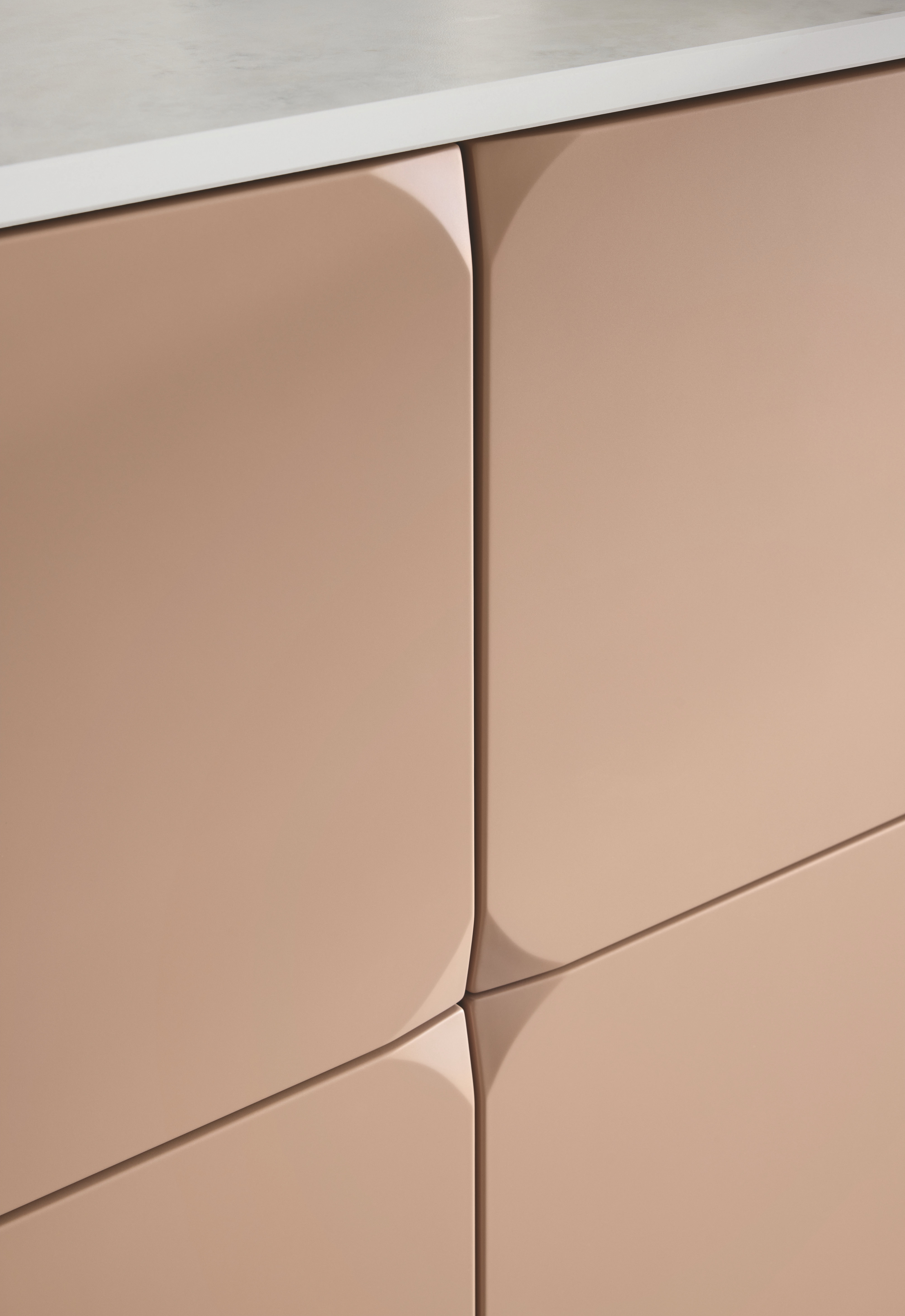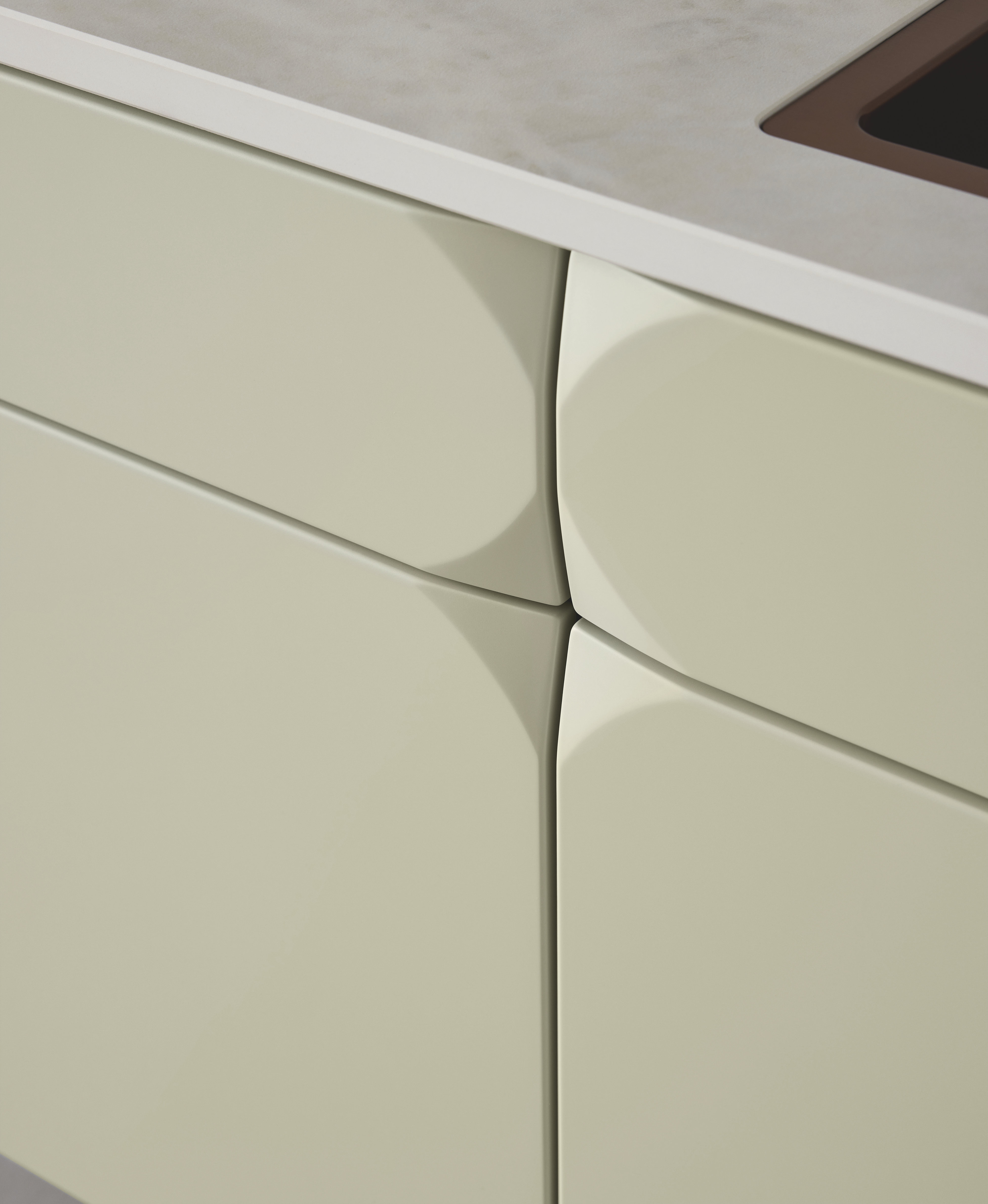 Die neue Designfront FACETTA mit hochwertiger, mehrschichtiger Mattlack-Oberfläche und sanft abgefasten Ecken bringt den urbanen Retro-Stil der 1950er zurück in die Gegenwart – Rock'n'Roll, Rollschuhe und Stricken. Absolut einzigartig und exklusiv für Liebhaber besonderer Gestaltung unterstreichen die COLORNETWORK®-Farben „come closer!“ und „feel jade!“ den sinnlichen Feinschliff dieses Küchendesigns: