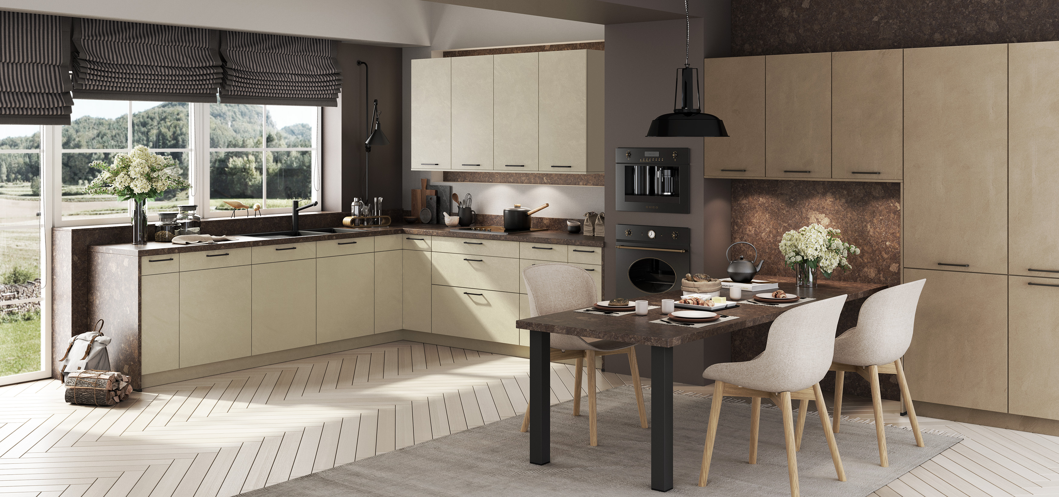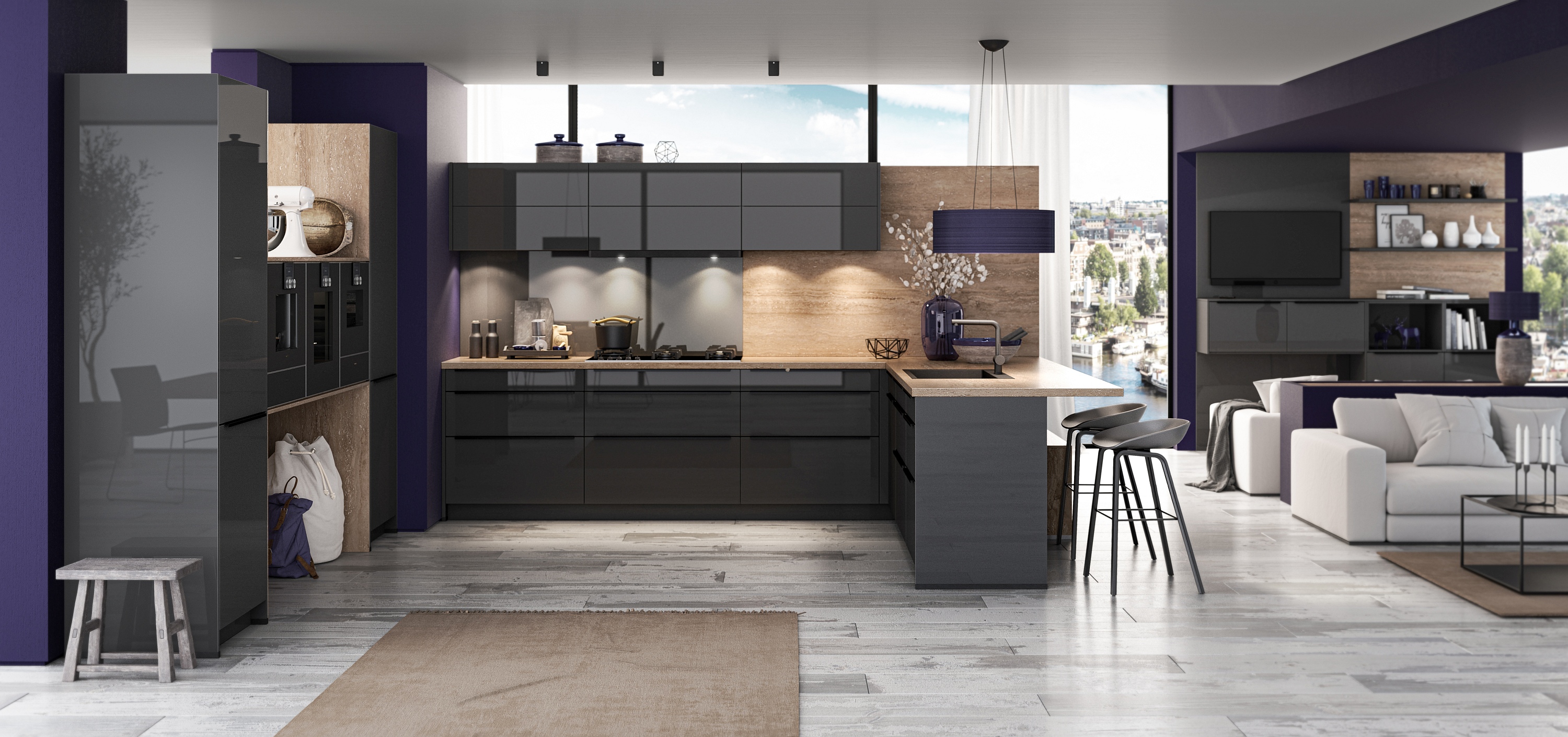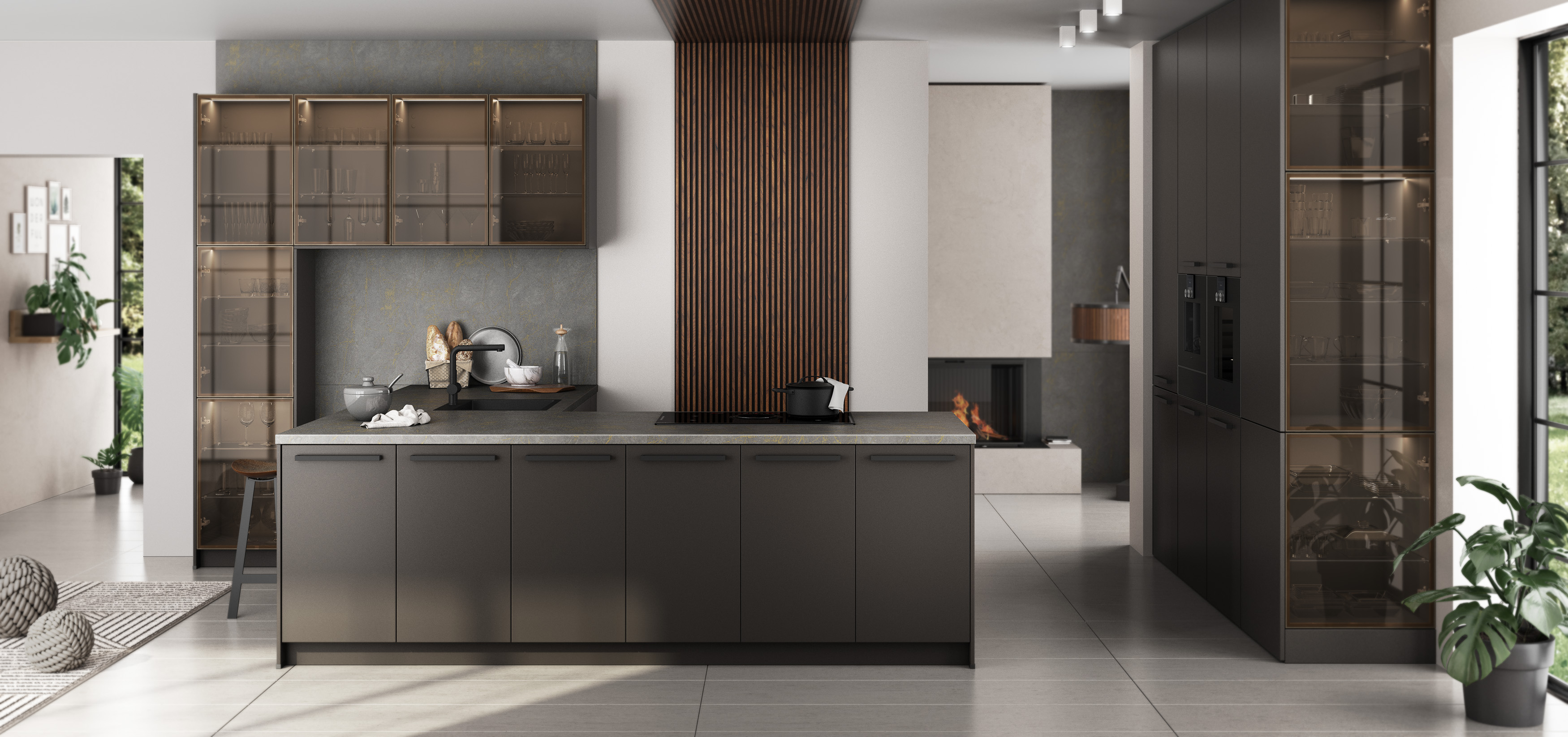 Stilrezept für das Herz des Hauses: Die zeitlose Trendfarbe Graphit veredelt jede Küche. Sie lässt sich hervorragend mit anderen Farben und Holz- oder Steindekoren kombinieren: die Vereinigung von Eleganz und Gemütlichkeit.